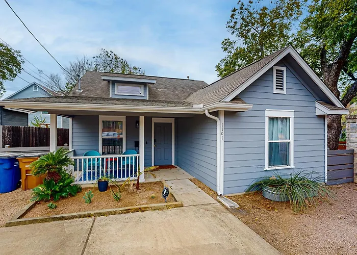 **East Austin Hideaway Villa is where contemporary comfort meets a touch of rustic charm in the heart of vibrant Austin.** Situated just a short 10-minute drive from the iconic Zilker Zephyr Miniature Railroad, this idyllic retreat serves as an ideal base for both exploration and relaxation. Nestled among lush greenery, the villa boasts unique design features that reflect the artistic spirit of East Austin.